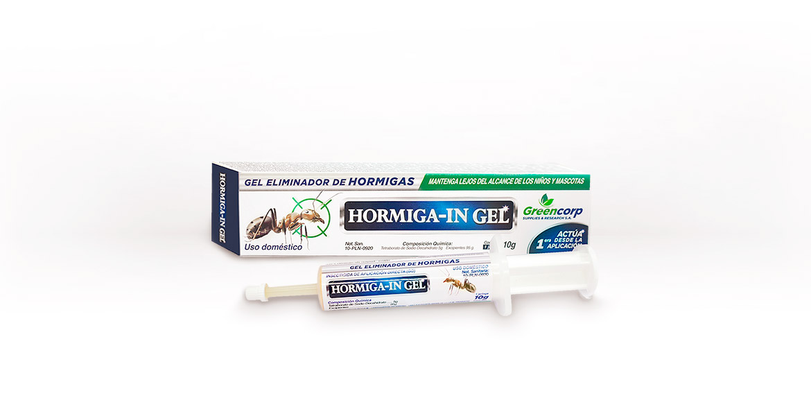HORMIGA-IN Gel eliminador de hormigas, es un revolucionario y poderoso insecticida que cuenta con la cantidad exacta de ingrediente activo y su formulación única le permite eliminar hormigas de forma indirecta hasta eliminar a la colonia entera. Es la opción ideal para ser utilizado en áreas sensibles como plantas alimenticias, escuelas, cuidado infantil y centros de atención médica.