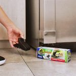 Coloque la trampa en el piso, con los dientes en dirección hacia la pared y luego active con el pie, presionando la parte superior hasta oír el click del seguro.